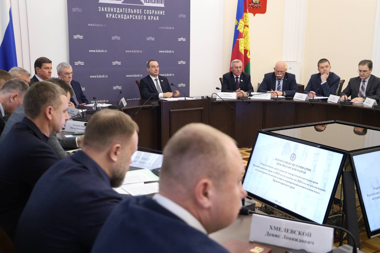 Руководитель ЗСК Юрий Бурлачко провел еженедельную депутатскую планерку. Темой совещания стали итоги деятельности департамента ветеринарии Краснодарского края за 2025 год.