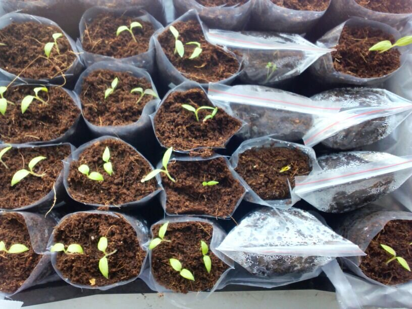 Использование мешочков с застежками также стало популярным — до появления всходов они выполняли роль парничков, а затем верхняя часть срезалась. Такой метод считается подходом «без пикировки», где подросшие всходы пересаживались в более крупные горшки.