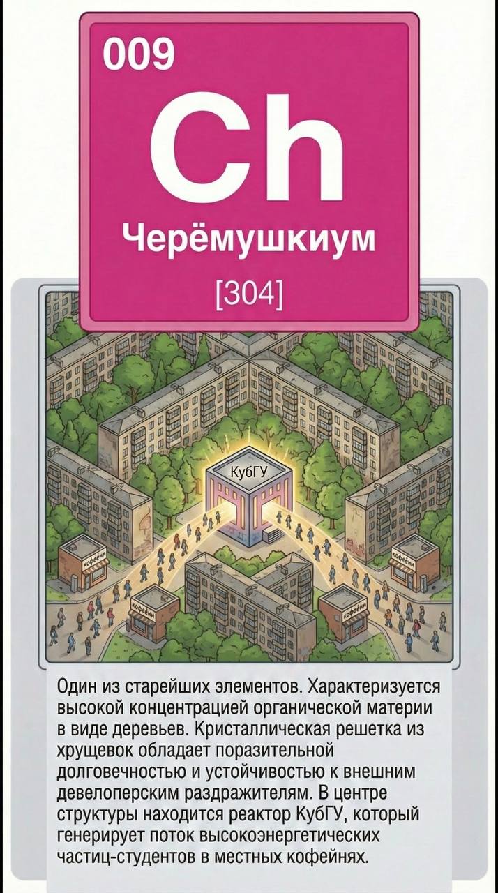 Яблоко на голову упало… поэтому мы пополняем периодическую таблицу районов Краснодара Первую часть особых «химических элементов» мы публиковали здесьА какой элемент таблицы — ваш?Быть в курсе | Мы в MAX