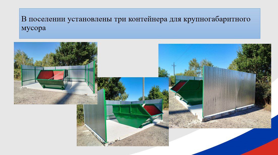 - За средства районного бюджета установлено 3 контейнера для крупногабаритного мусора, получено 30 новых контейнеров для ТКО.