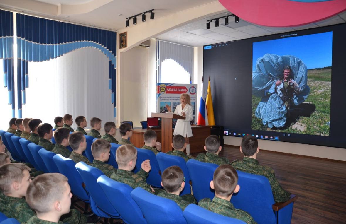 Встреча прошла в форме беседы с представлением видео- и фотоматериалов. Очень трогательно прозвучало от мамы Никиты: «Уходя на СВО, Никита взял с собой удостоверение и погоны кадета, которые он очень бережно хранил».