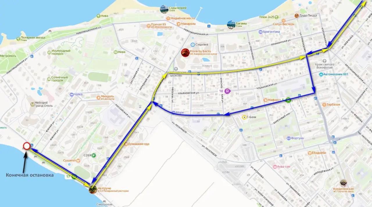 Обращаем внимание пассажиров, что в связи с корректировкой схемы движения остановочные пункты «Толстый Мыс» и «Красногвардейская» маршрутом №5 обслуживаться не будут. Необходимо учитывать указанные изменения при планировании поездок.