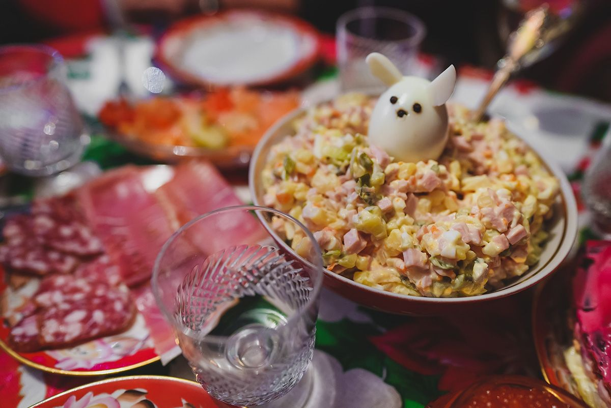 Важно создать приятную атмосферу: угостить гостей привычными, но дорогими сердцу блюдами, и не забыть про символ следующего года — змейку подколодную.
