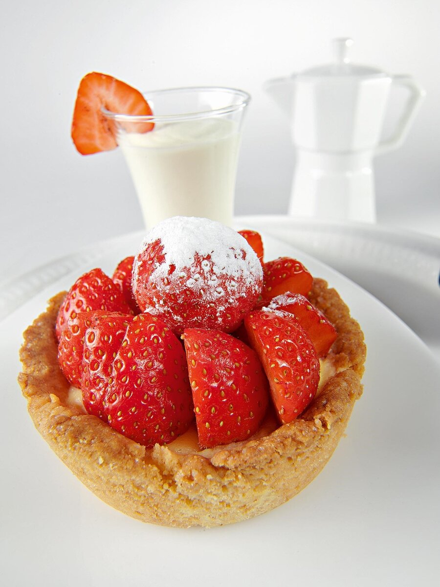 Для крема шантильи сливки взбиваются с 30 г сахара и содержимым ванильного стручка до крепких пиков. Клубника нарезается тонкими ломтиками. Охлажденные тарталетки украшаются ягодами, а подаются вместе с кремом, который можно полить сверху.