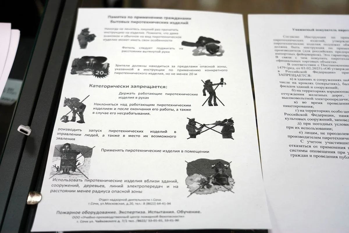 Во время последних атак киевского режима на Сочи ночью в городе зафиксированы сразу несколько фактов запуска мощной пиротехники в районе улиц Петропавловская, Транспортная, Пластунская и других. По поручению главы города Андрея Прошунина в городе усилен мониторинг торговых точек по продаже пиротехники. Специализированные торговые объекты, которых в нашем городе ограниченное количество, с сегодняшнего дня будут выдавать покупателям памятки о запрете использования их продукции во время звуков сирен и работы ПВО.