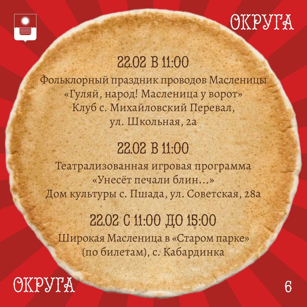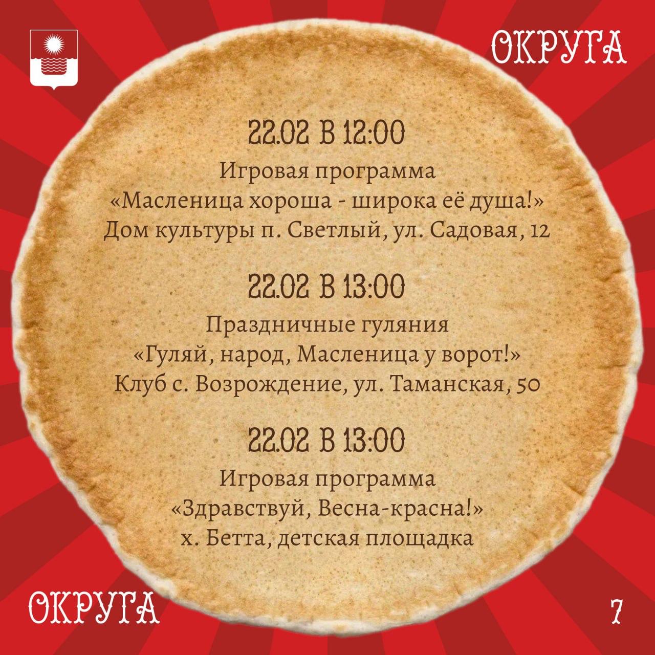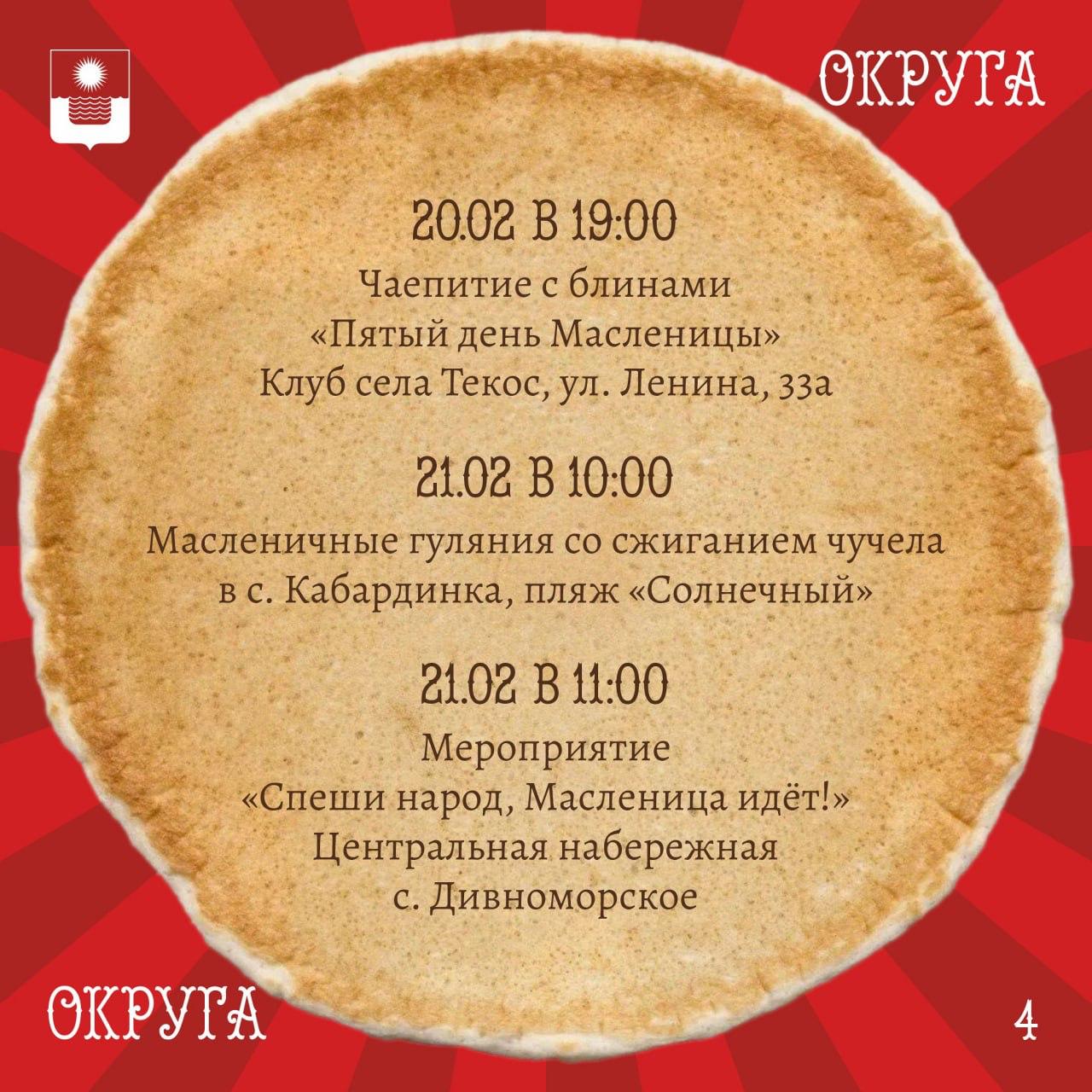 Афиша масленичных гуляний в Геленджике