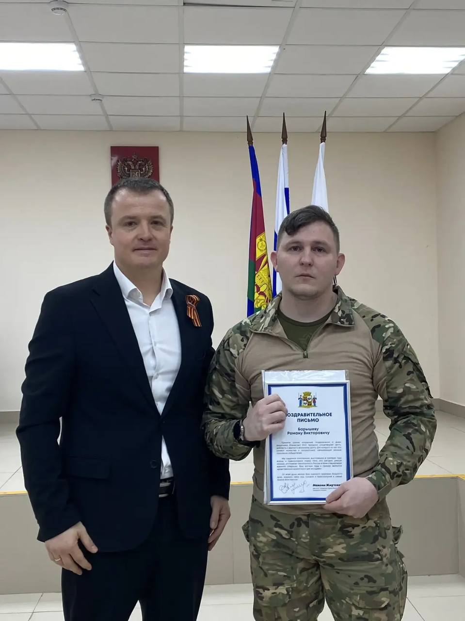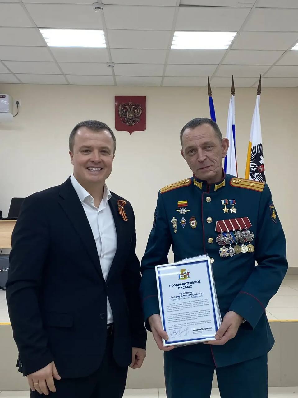 Накануне праздника собрались на дружескую встречу. Поздравляли, пели песни, общались, даже по чарочке праздничной подняли. Очень благодарен ребятам, что откликнулись на наше приглашение, пришли и с удовольствием провели время. Рад и горд, что на нашем округе живёт Герой России, участник СВО Артём Владимирович Чумаров, который тоже лично поздравил ребят, нас поддержал, с которым мы очень тесно сотрудничаем.