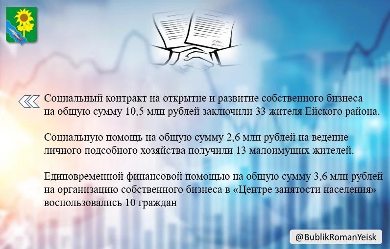 По линии центра занятости и соцзащиты на развитие бизнеса в виде социальных контрактов, соцпомощи на ведение ЛПХ и единовременной помощи привлечено порядка 17 млн рублей.
