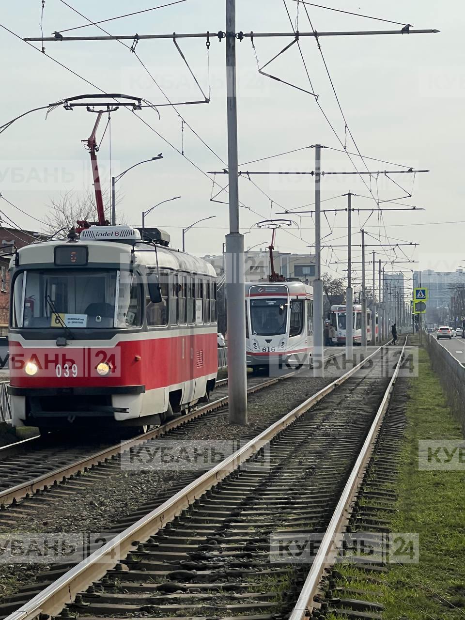 Трамваи остановились в районе пересечения улиц Калинина и Каляева в Краснодаре.