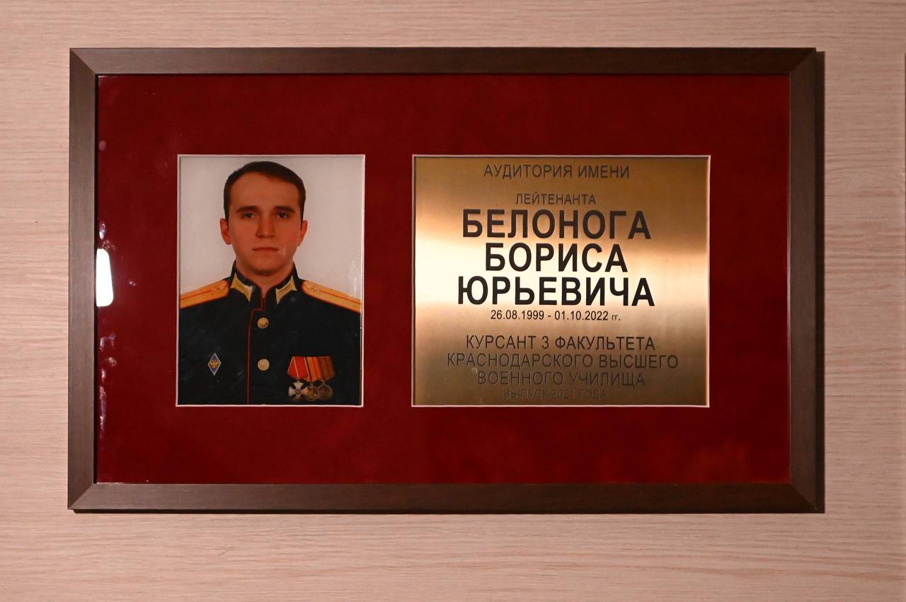 В вузе берегут память о своих Героях. Начальник училища Игорь Валентинович Шпырня принял решение, что имя каждого выпускника, погибшего при выполнении задач на СВО, будет увековечено. Вместе с генерал-майором и митрополитом Василием мы открыли табличку и аудиторию имени лейтенанта Бориса Белонога. Для меня честь лично поблагодарить его родителей – Юрия и Ирину – за воспитание сына.