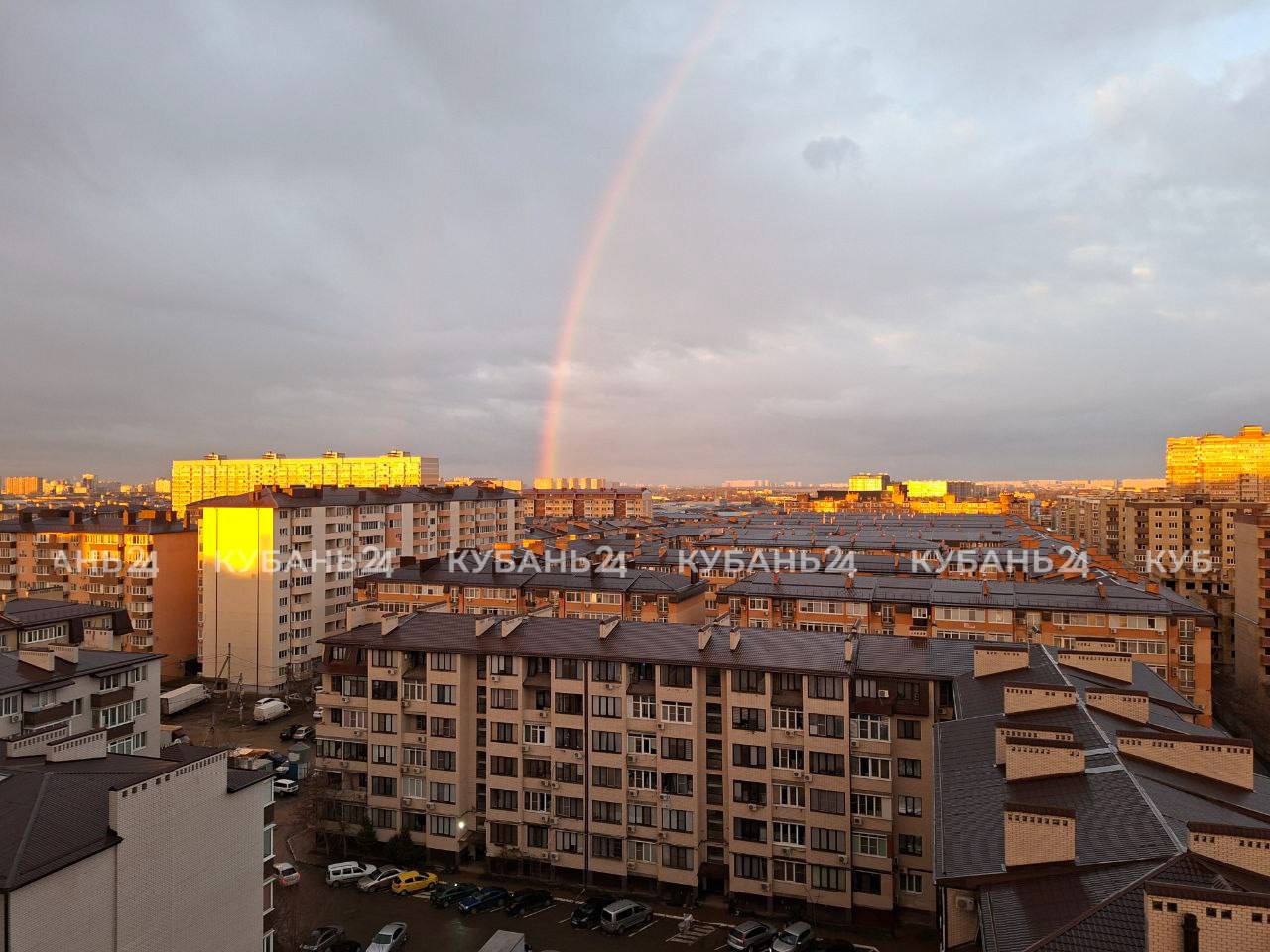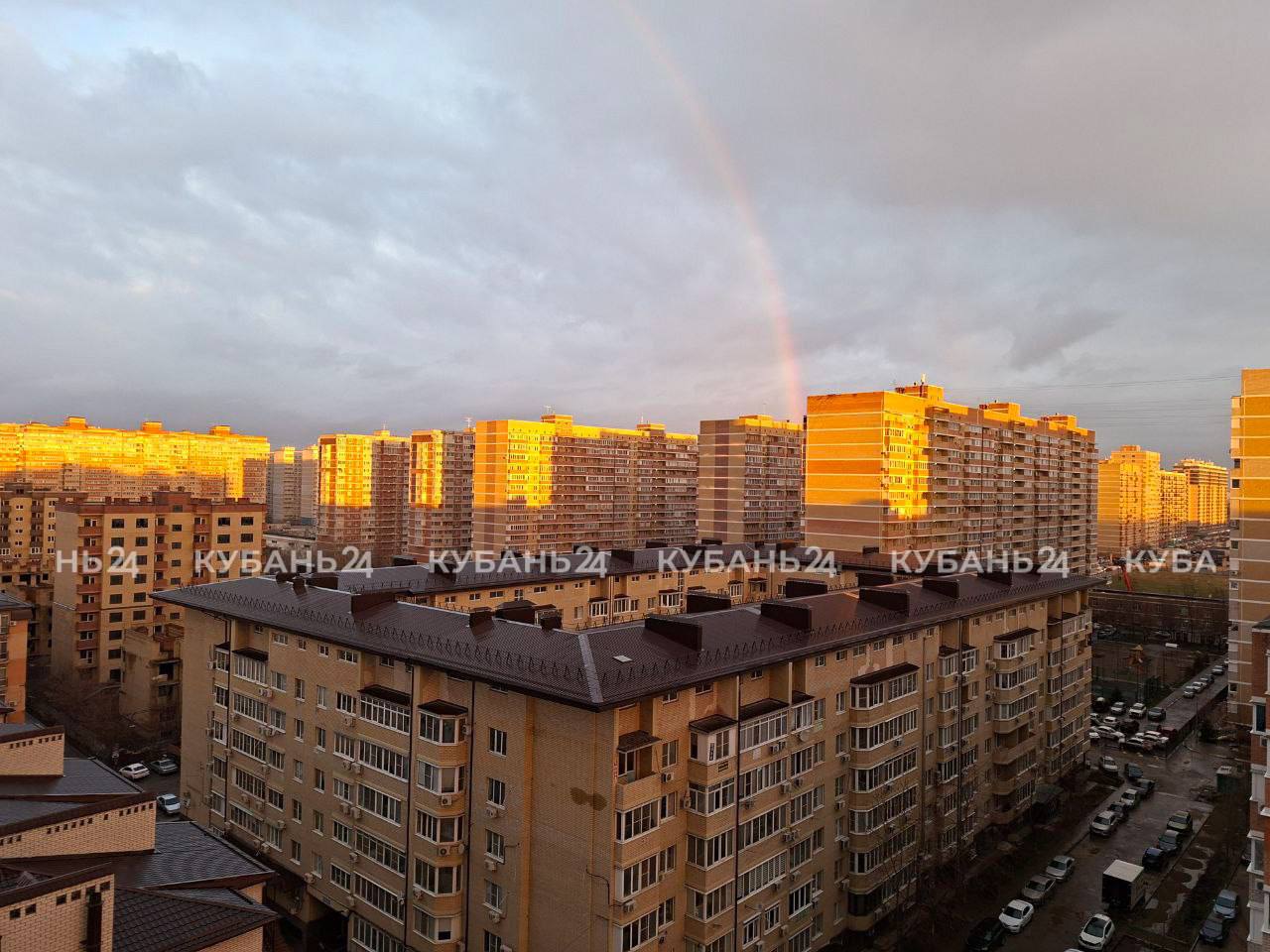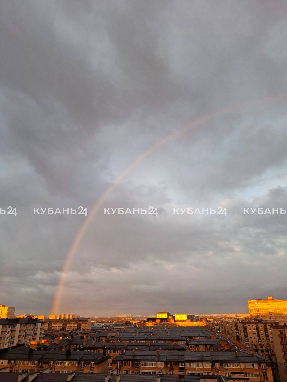 Радуга появилась на небе, чтобы пожелать краснодарцам доброго утра.