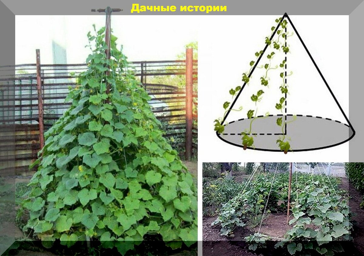 Выращивание огурцов в виде вертикальных конструкций, подобным елочке, становится популярным. Для этого создается круглая грядка диаметром около 1,5 метров, на которую устанавливается опора. Рассада высаживается по окружности, а шпагаты позволяют растениям цепляться за опору и расти вверх, обеспечивая максимально эффективное использование пространства и доступа солнечного света.