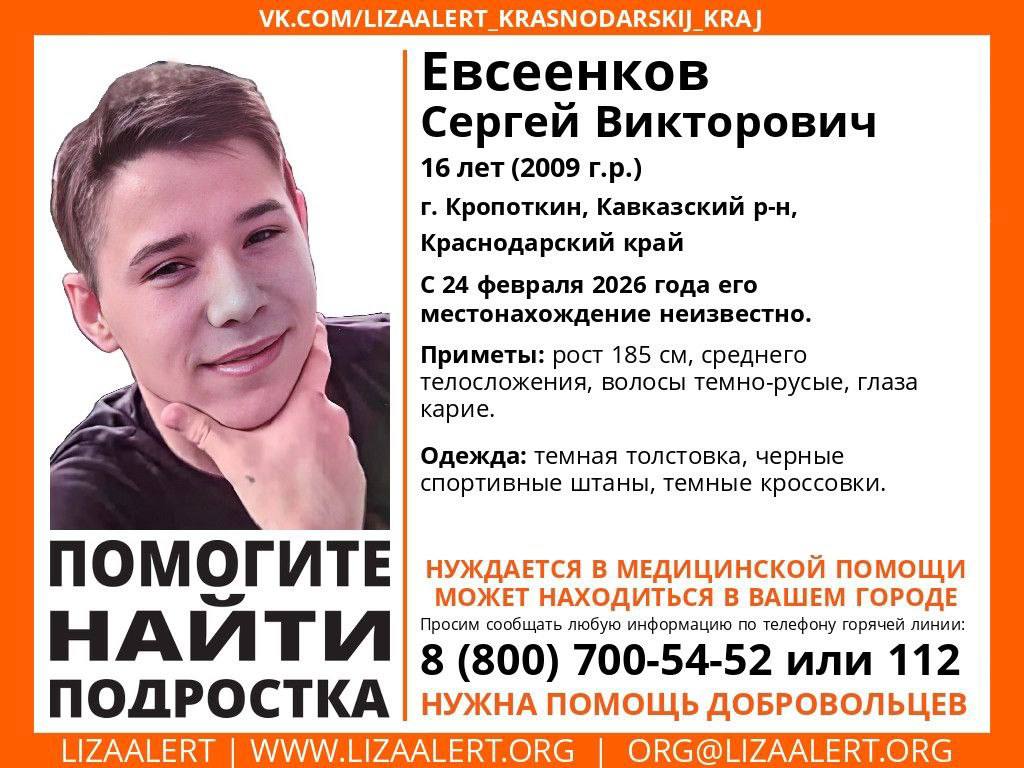 Нуждается в медпомощи!. Поиски второго подростка, сбежавшего из интерната в Кропоткине, продолжаются Напомним, двое товарищей устроили побег 25 февраля