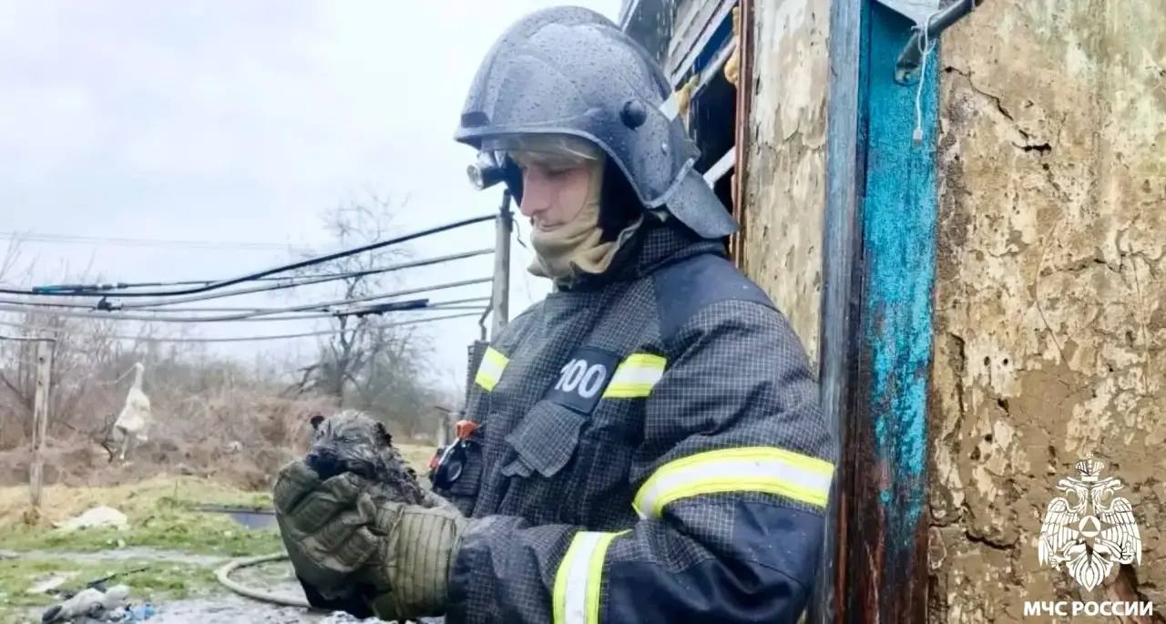 Пожарные спасли щенка из огня в Краснодарском крае