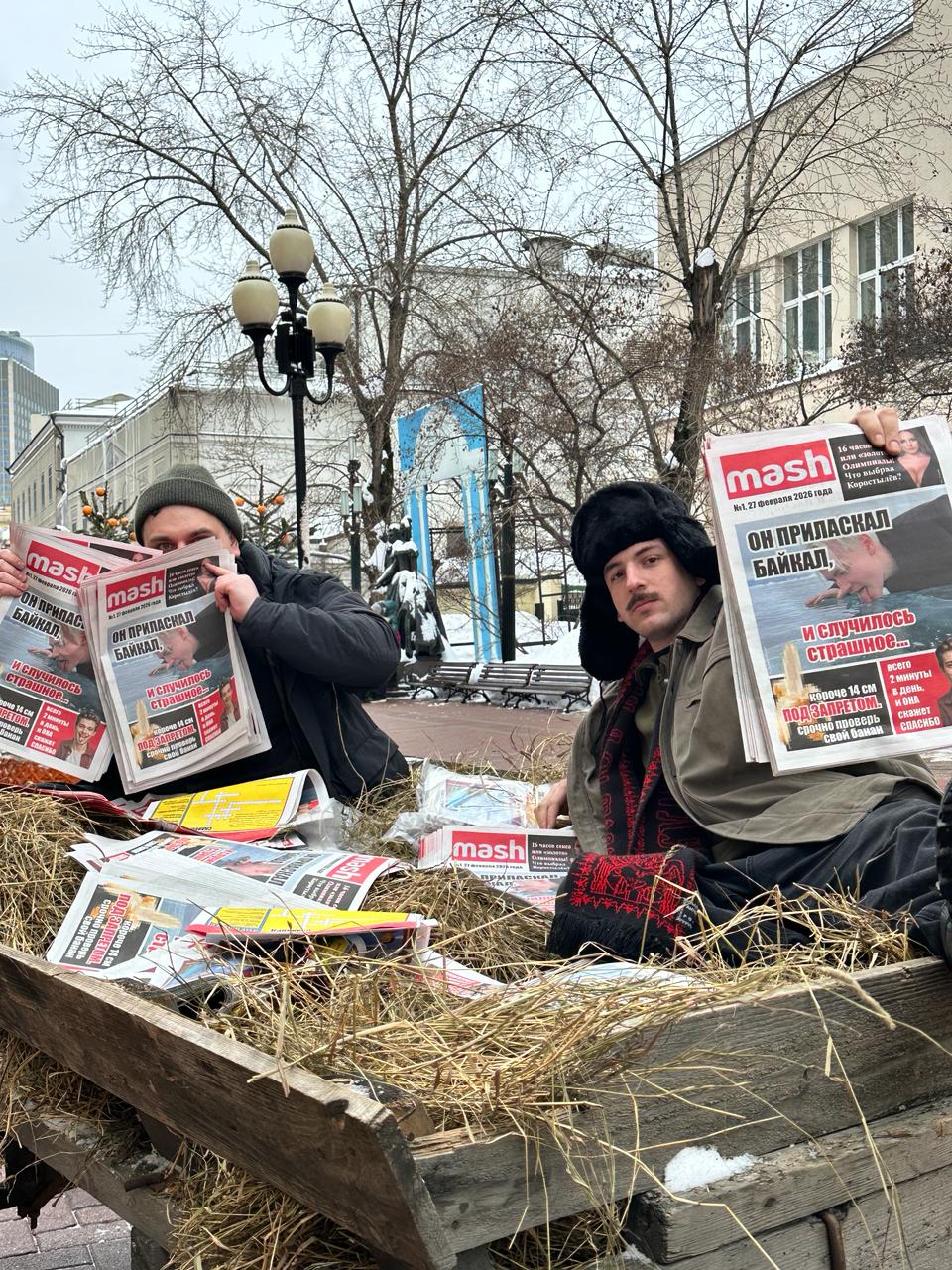 Взять экземпляр легенды можно только сегодня на московском Арбате. Наш газетчик с усами уже ждёт читателей у разваливающейся телеги. На первой полосе Шаман и Байкал, внутри — мнения экспертов, подборка упражнений для языка и кроссворд для интеллектуалов.