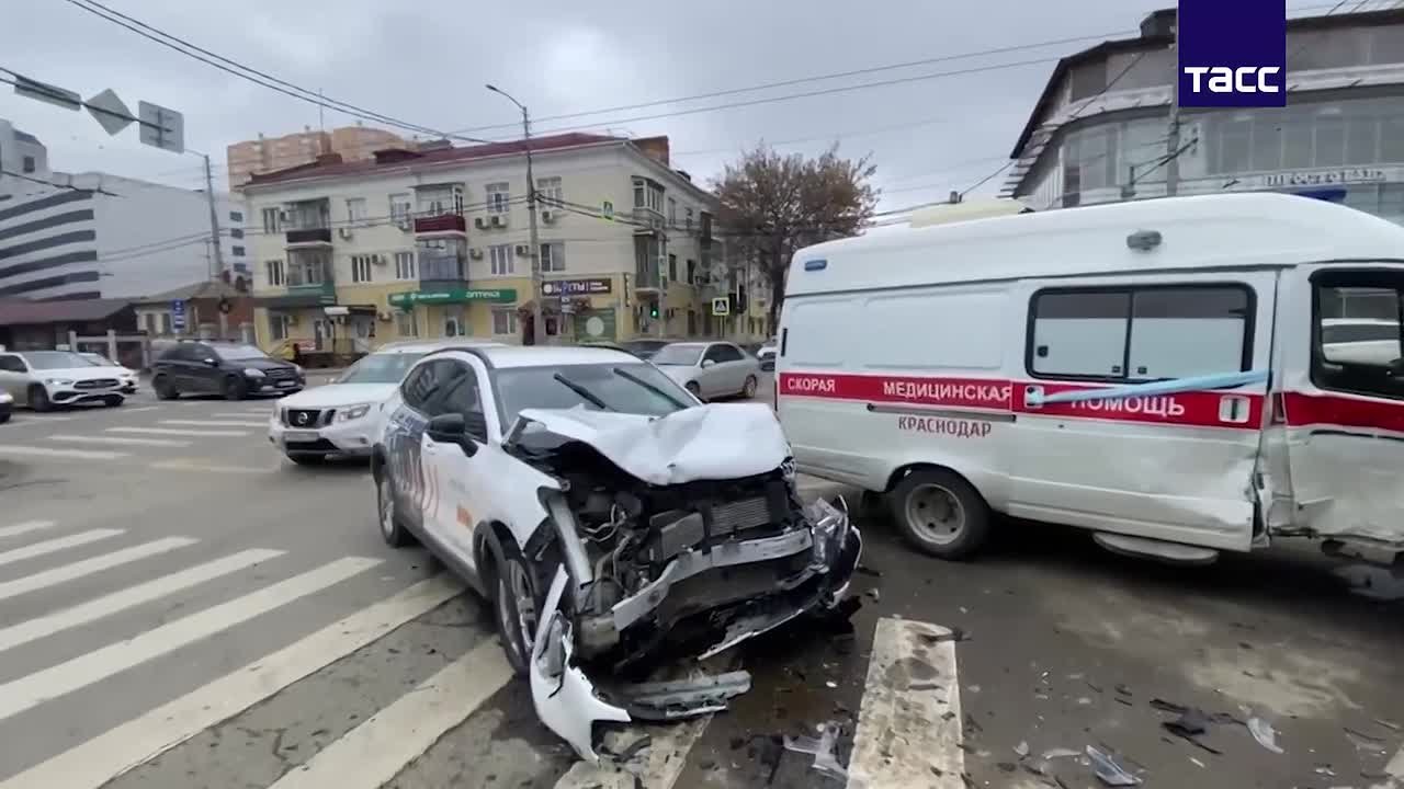 Обстановка на месте ДТП в Краснодаре с машиной скорой помощи. Пострадали четыре человека.