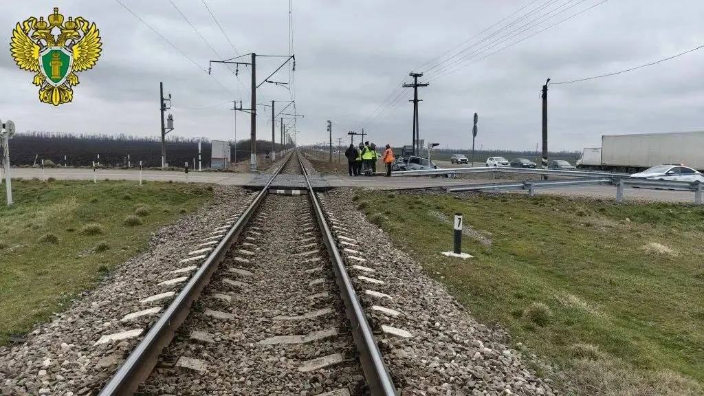 Грузовой поезд столкнулся с легковушкой на ЖД-переезде в Усть-Лабинском районе