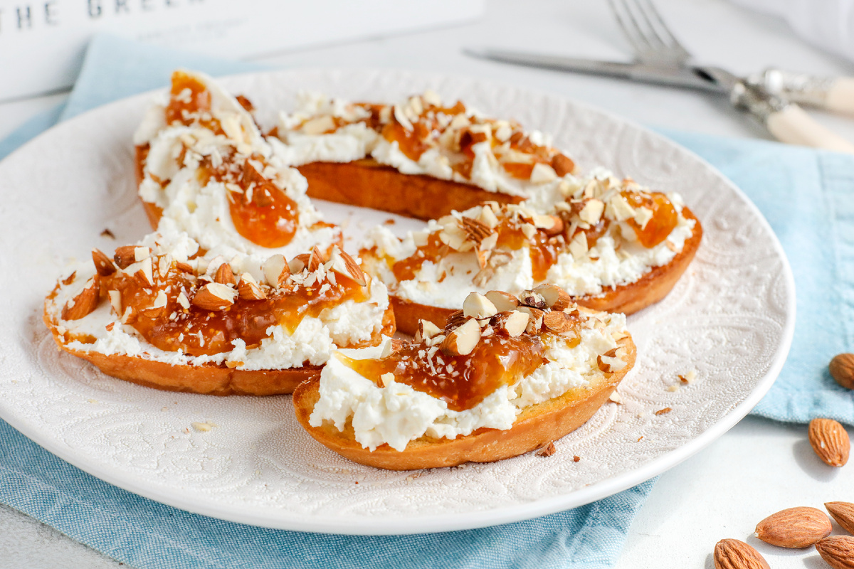 Шаг 3: Мелко нарежьте миндаль или измельчите его с помощью ножа. На рикотту выложите инжирный джем, посыпьте дробленым миндалем и подавайте к столу.