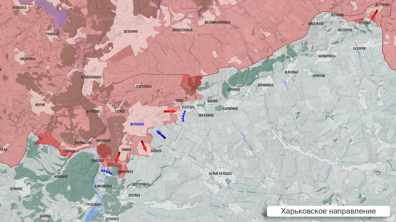 На Харьковском участке, в Волчанских Хуторах, Вс РФ продвинулись ещё на 300 метров. МО сообщило об освобождении Нескучного – села с довоенным населением ~90 человек в километре к югу от Зелёного. Рядом – граница с Шебекинским районом Белгородской обл. Этот участок пришёл в движение 1 февраля, когда было освобождено Зелёное.