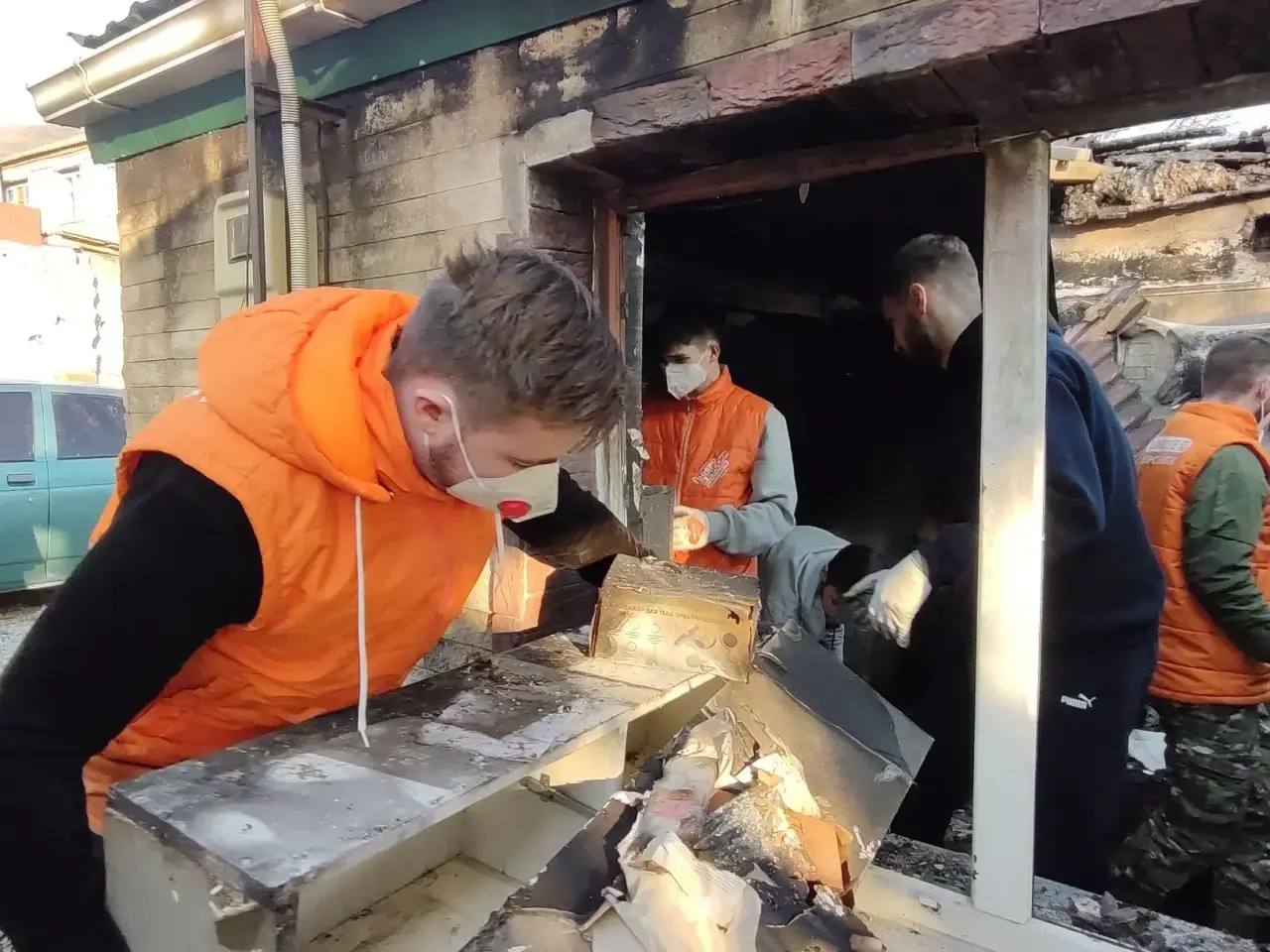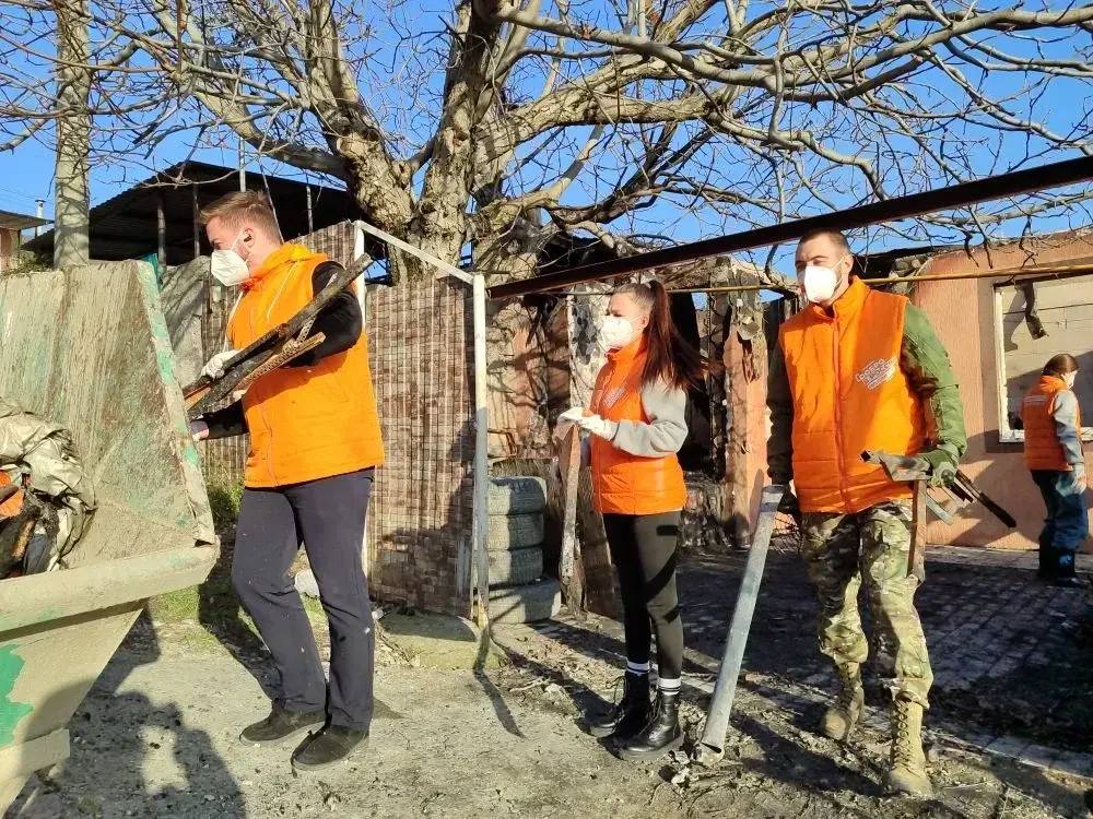 Волонтеры штаба #МЫВМЕСТЕ помогают жителям Новороссийска в уборке квартир и домов, пострадавших от ночной массированной атаки.