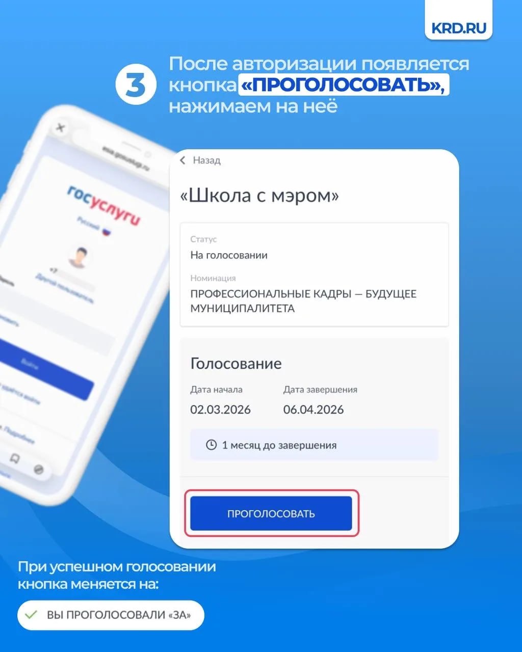 Нажать на кнопку «Проголосовать»