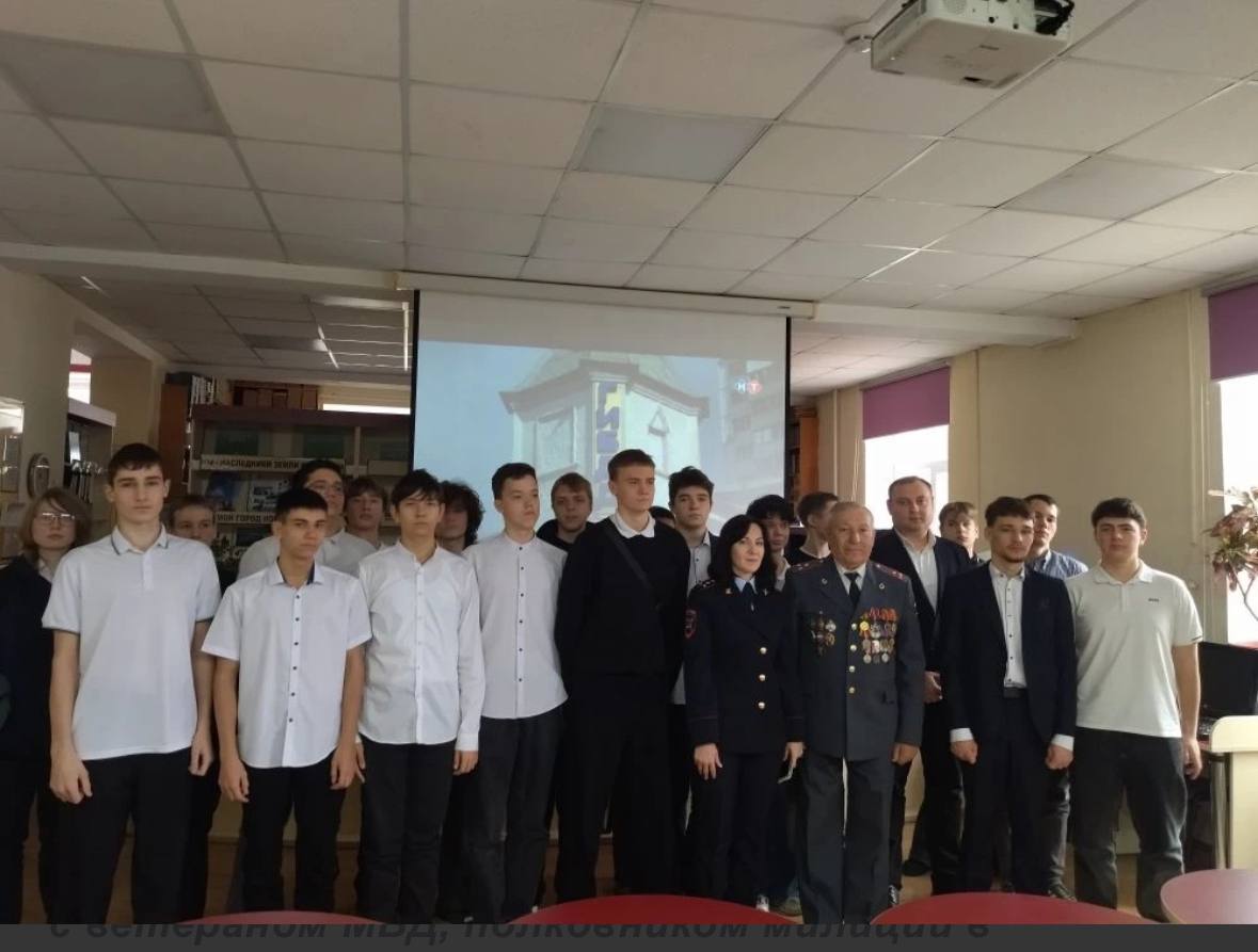 Полковник милиции в отставке Владимир Михайлович Беличенко рассказал о деятельности органов внутренних дел, как избежать риска попадания в дорожную аварию, призвал к соблюдению Правил дорожного движения, а также быть законопослушными гражданами. Студенты с интересом слушали ветерана и принимали участие в беседе.