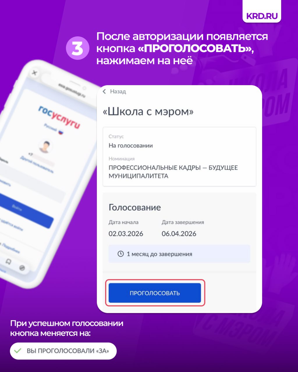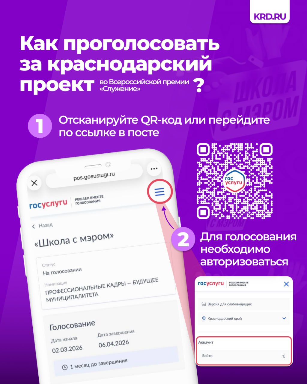 «Школа с мэром» вошла в ТОП-110 Всероссийской премии «Служение». Итоги премии зависят от народного голосования, которое продлится до 6 апреля. Поддержать проект может каждый, для этого нужно сделать всего 3 шага: