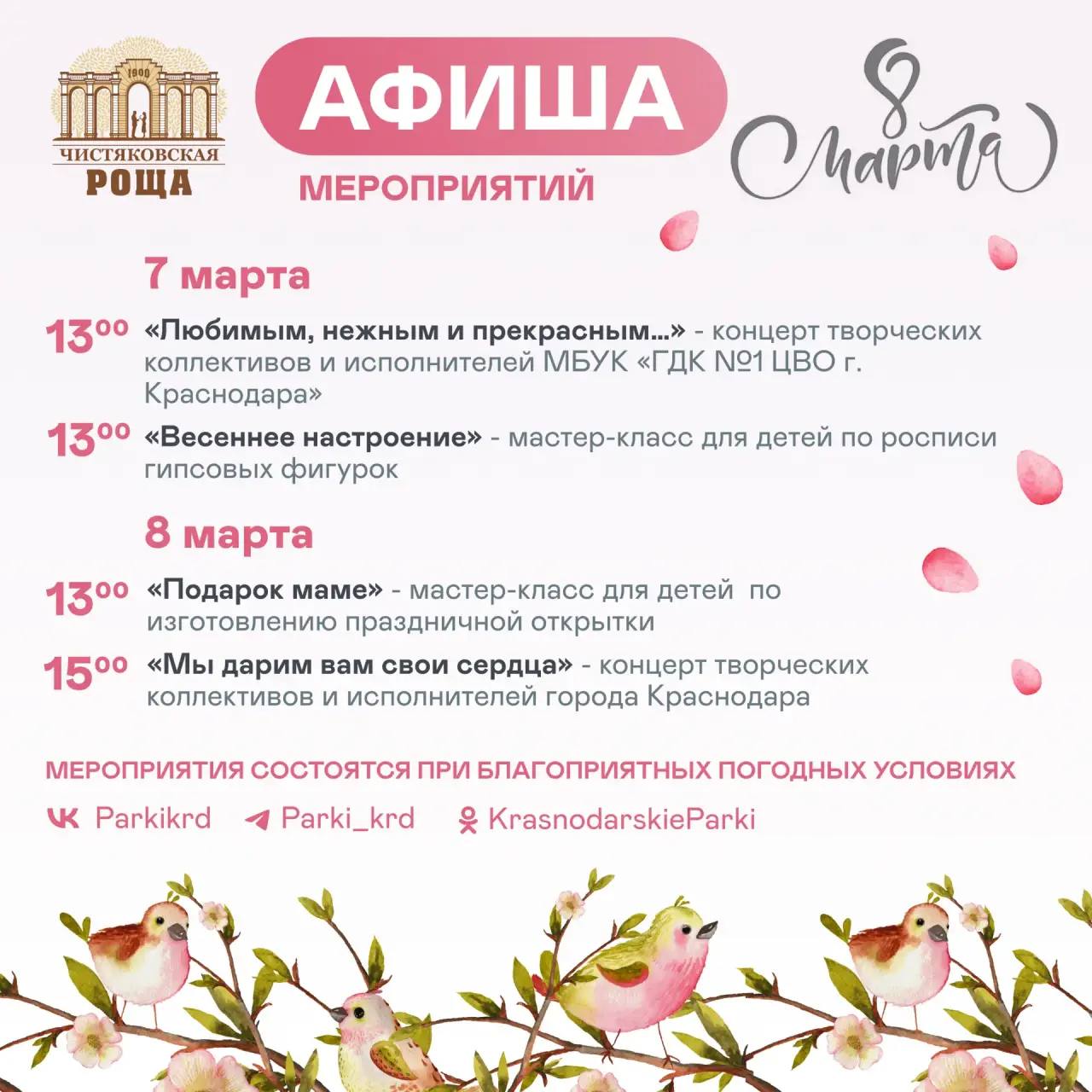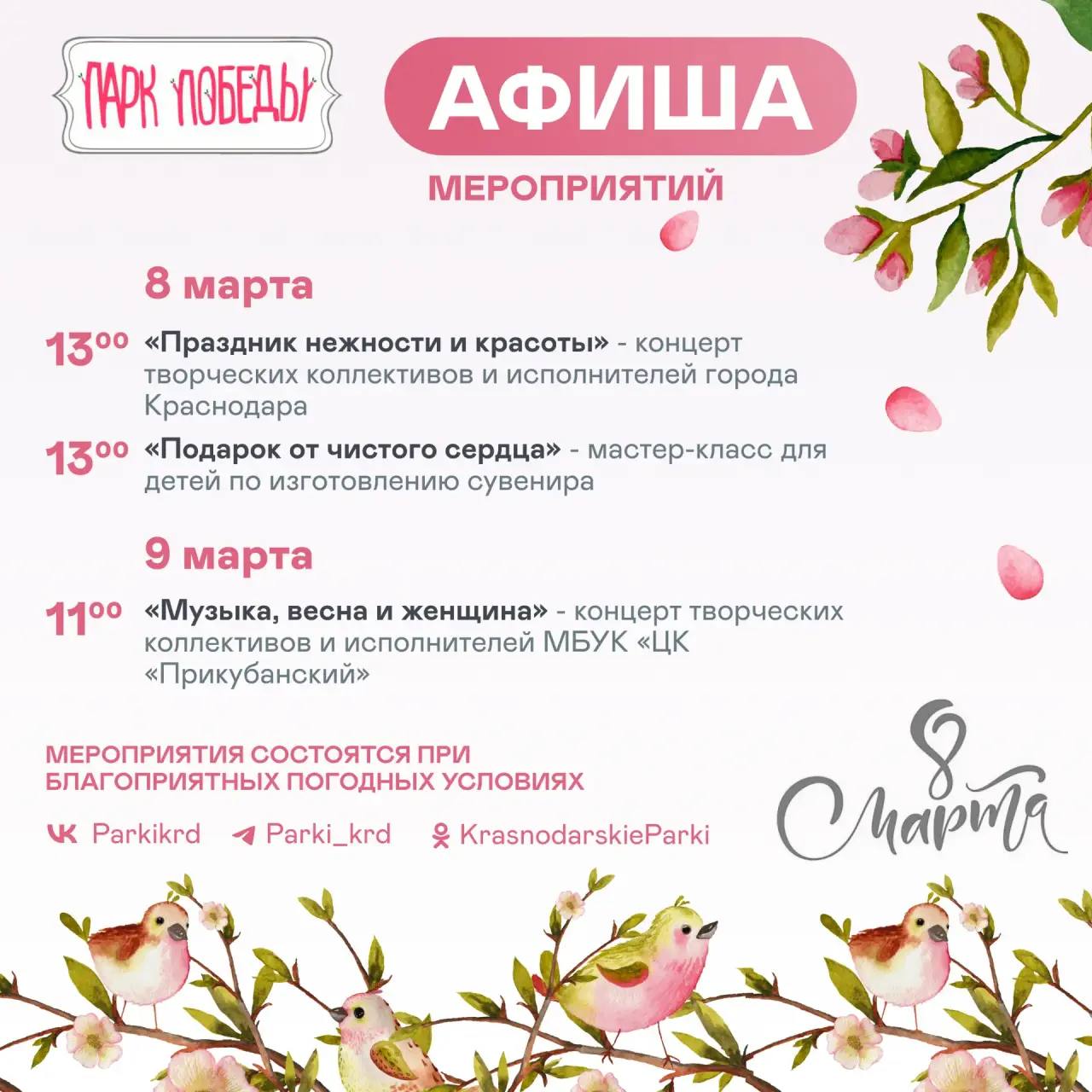 С сегодняшнего дня по 9 марта в парках Краснодара будут проходить праздничные мероприятия.