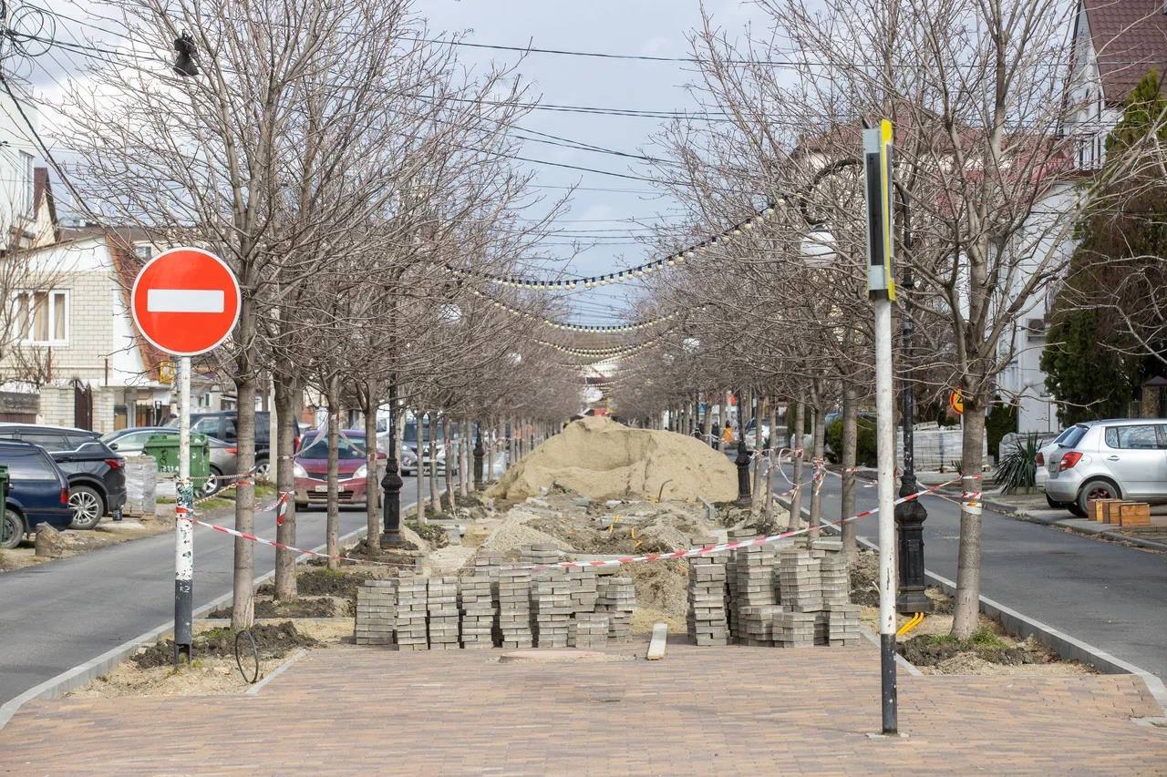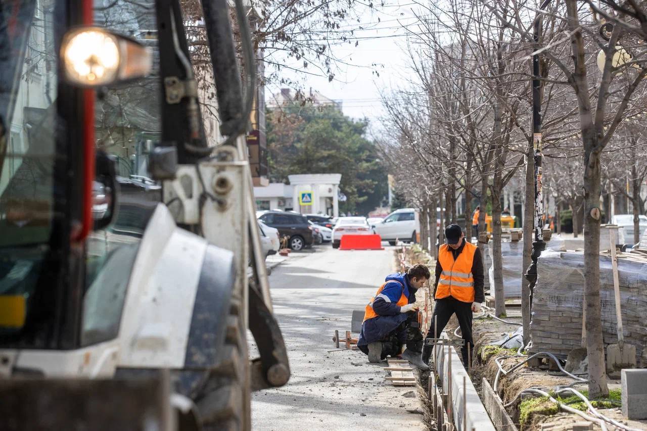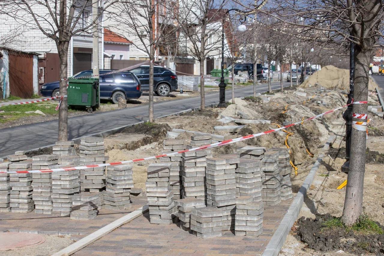 Оценили ход работ благоустройства пешеходной аллеи по ул. Терской. Предусмотрена замена бордюров и обновление пешеходной зоны. Срок реализации более года.