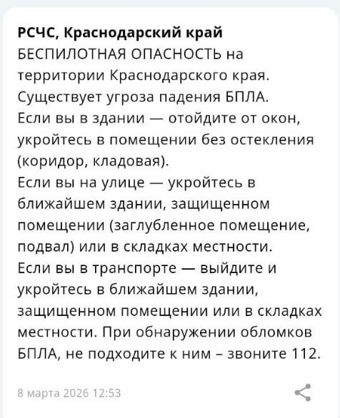 На территории Новороссийска объявлена угроза атаки беспилотников. Об этом сообщил глава города Андрей Кравченко. В Новороссийске включили сирены системы оповещения из-за атаки БПЛА, сообщил глава города Андрей Кравченко.// Оперативный штаб - Краснодарский край