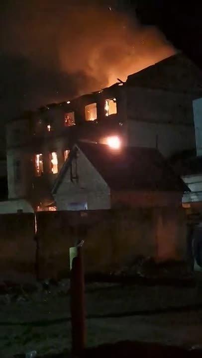 Крыша обрушилась из-за пожара в здании в Тихорецком районе.
