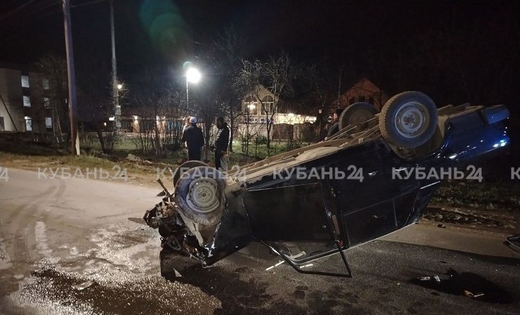 Два человека пострадали в ночной аварии с «перевертышем» в Горячем Ключе.