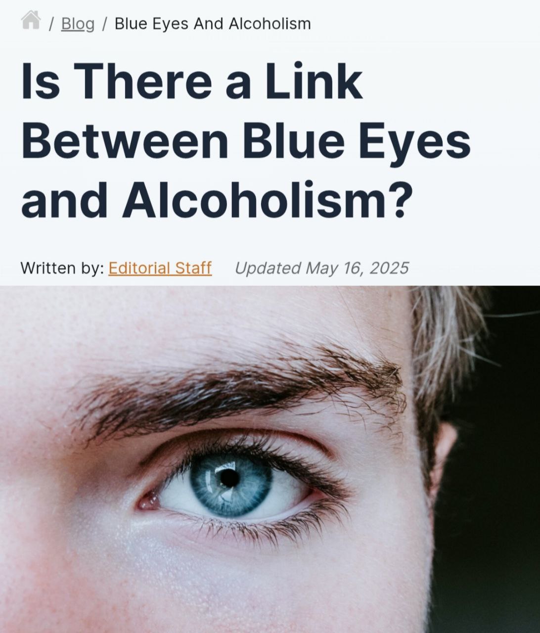 Эксперимент с участием 1300 человек показал, что алкогольная зависимость на 54% чаще проявляется у людей со светлыми глазами — голубыми, зелёными, серыми и светло-карими.