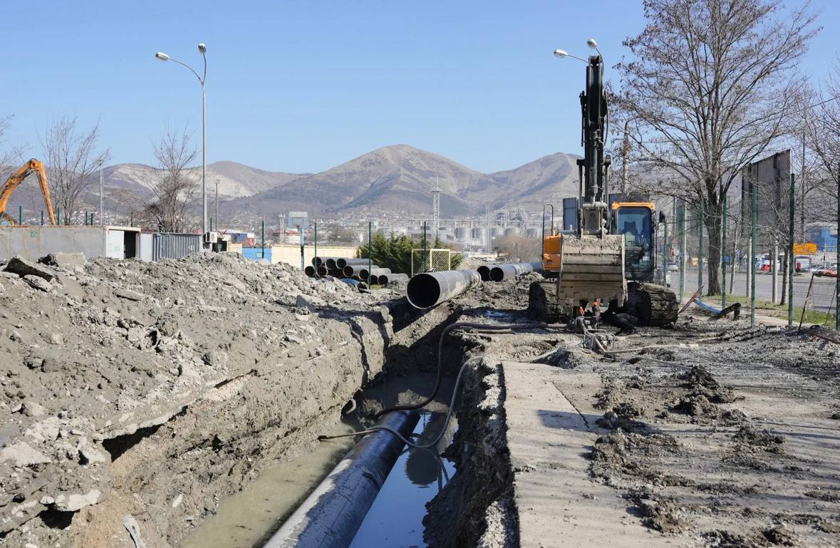 В Новороссийске на улице Магистральной продолжается реконструкция наиболее аварийного участка Троицкого группового водопровода