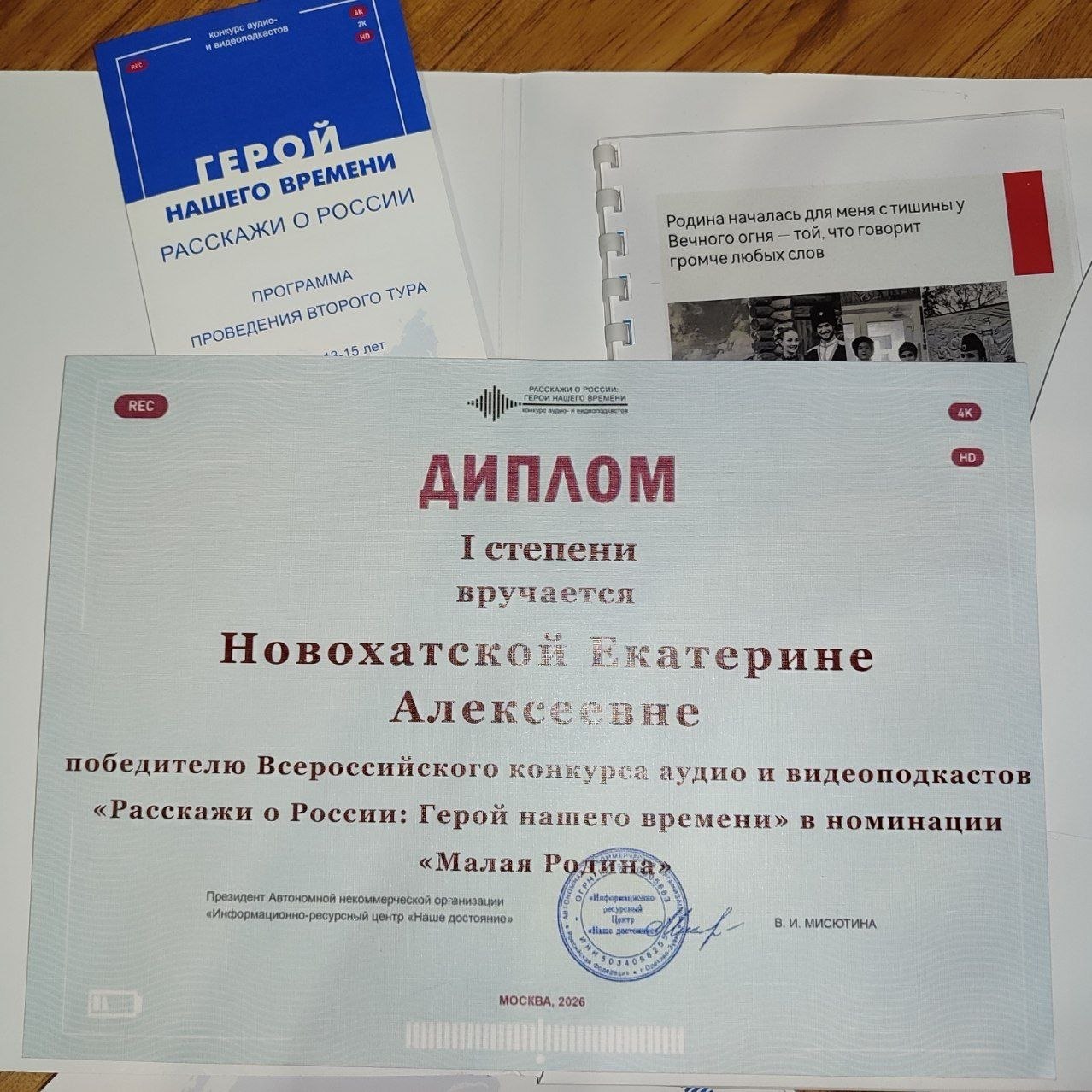 Ученица школы № 5 имени Героя Советского Союза П.А. Михайличенко Екатерина Новохатская достойно представила Краснодарский край и Ейский район на федеральном уровне, став лучшей в номинации «Видеоподкаст: Малая Родина».