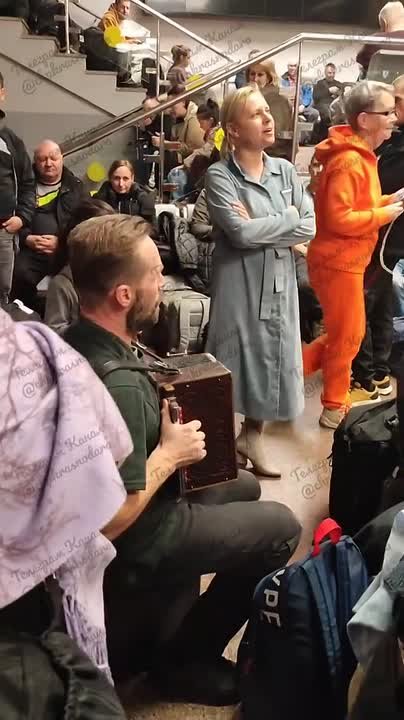 Что делать, чтобы не поддаваться панике и не давать волю нервам, если рейсы в аэропорту задерживают? Правильно: надо достать гармонь и петь! Так и сделали в воздушной гавани Краснодара пассажиры, которым, по воле случая, пришлось ждать во время введения очередного ограничения на вылет.