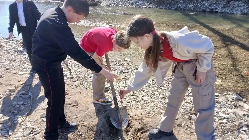 Юные жители Адербиевки высадили деревья вдоль реки Адербы