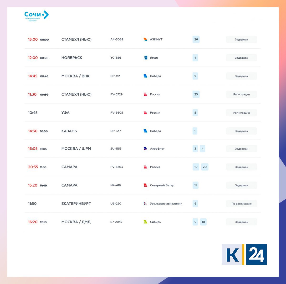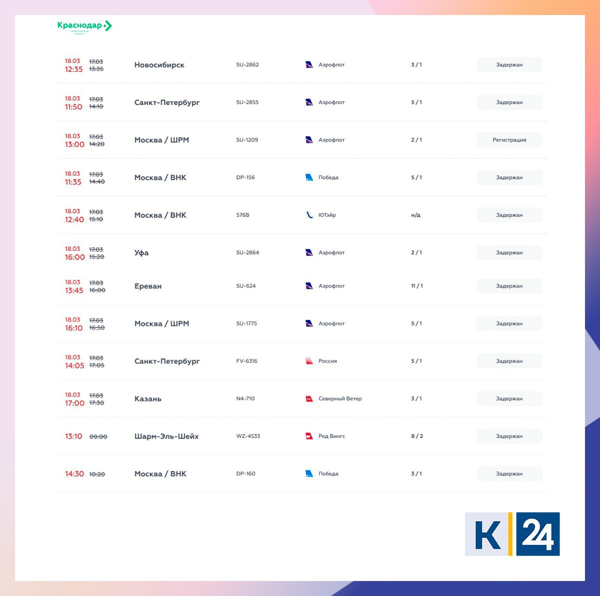 Ночью воздушные гавани вводили запрет на прилеты и вылеты самолетов из-за атаки беспилотников. Согласно онлайн-табло в аэропорту Краснодара задерживаются 22 рейса, а в воздушной гавани Сочи — 20.