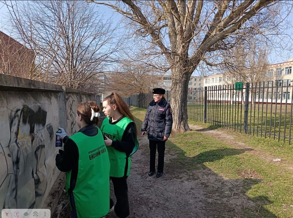 17 марта 2026 года отделом по делам молодежи администрации муниципального образования Ейский район совместно с оперуполномоченными отдела по контролю за оборотом наркотиков отдела МВД России по Ейскому району организовано межведомственное рейдовое мероприятие по устранению надписей пронаркотического содержания на территории города Ейска.