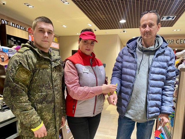 Инспекторы оставили на стойке информации буклеты-памятки и привязали ленточки на руки водителей «Движение с уважением!»