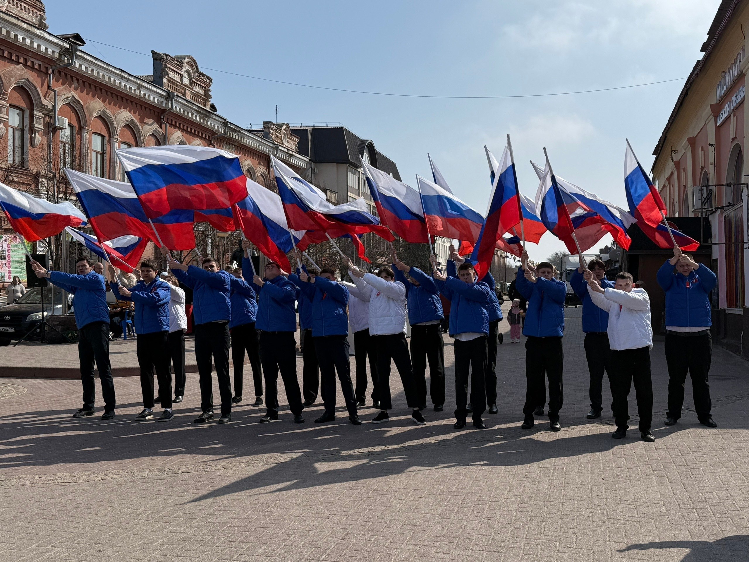 На площади Искусств города Ейска развернулось праздничное событие, объединившее представителей общественности, молодёжи и деятелей культуры. Акция приурочена к знаменательной дате новейшей истории России — 18 марта, когда был подписан договор о вхождении Республики Крым и города Севастополя в состав Российской Федерации