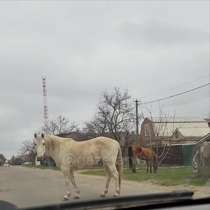 Тройка лошадей перегородила дорогу в Динской