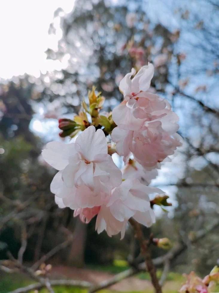 Деревья вовсю цветут, и парк теперь – нежное розовое облако.