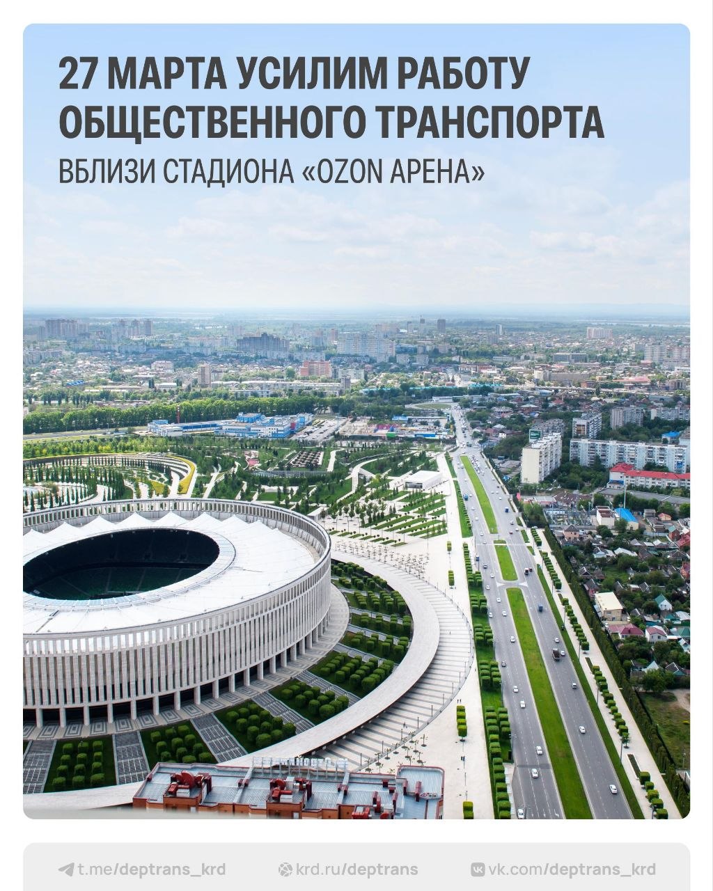 В районе «Ozon Арены» усилят работу общественного транспорта 27 марта