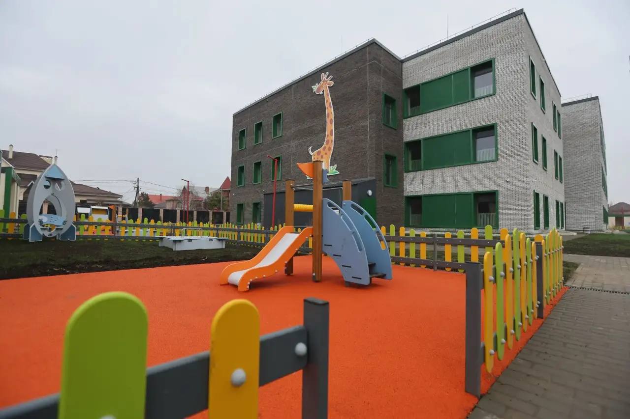 Детский сад на 300 мест уже возведён. Группы, спортивный и музыкальный залы оснащены необходимым оборудованием, а самое главное – удобной для маленьких воспитанников мебелью. Причём изготовлена она в России, в том числе на Кубани. Также отечественное оборудование используется в пищеблоке.