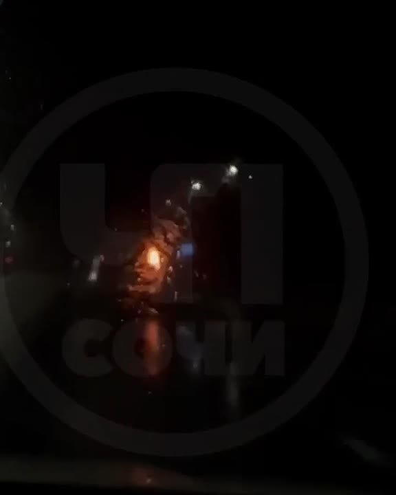 Огненное ДТП произошло на Новом Кранополянском шоссе в Адлерском районе. Ночью под дождём вспыхнул асфальтоукладчик.Происшествие сняли случайные очевидцы, ехавшие мимо.#происшествияМы в ВК Мы в МАХ