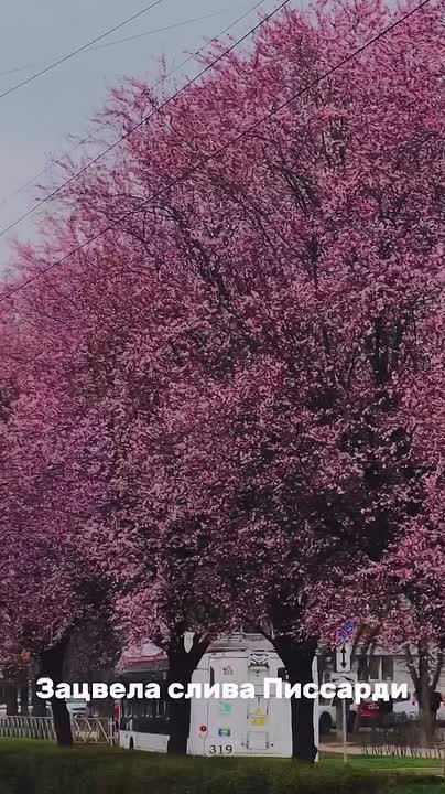 Словно в Японии, улицы окрасились в цветении слив Писсарди и Нигри. Жители и туристы спешат полюбоваться зрелищем — сезон продлится до конца майских праздников.