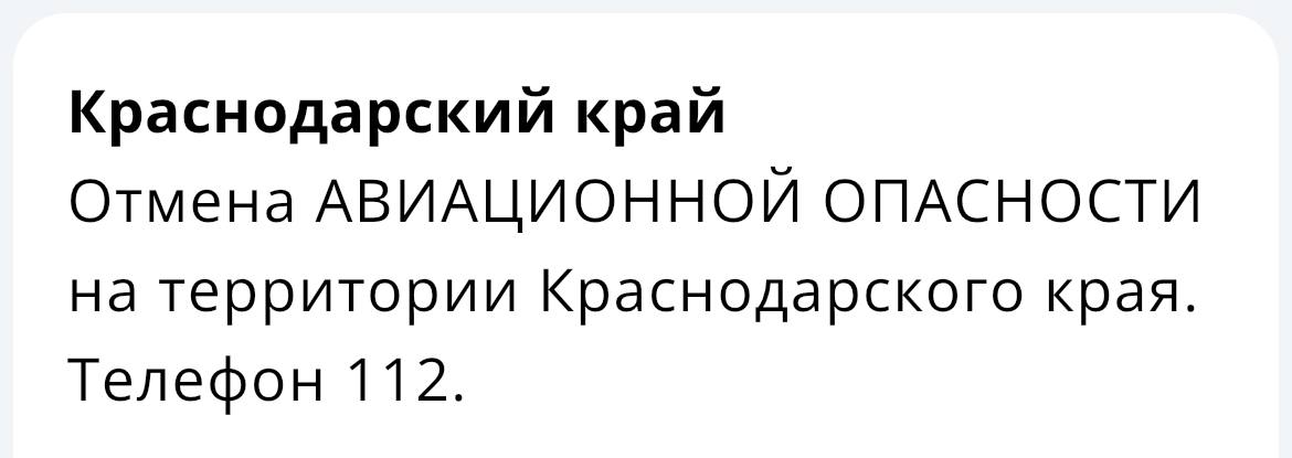 Отмена авиационной опасности объявлена в Краснодарском крае