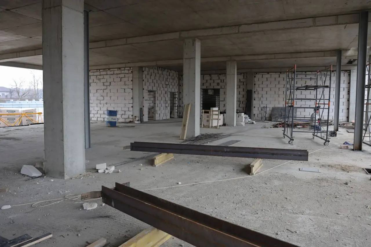 В настоящее время уровень готовности объекта превышает 35%. Завершены земляные работы. Строители выполняют устройство фундамента — данный этап близок к завершению. Одновременно на объекте возводят несущие стены, колонны и перекрытия, ведется армирование строительных конструкций и кладка наружных стен из газоблоков на первом и втором этажах здания.