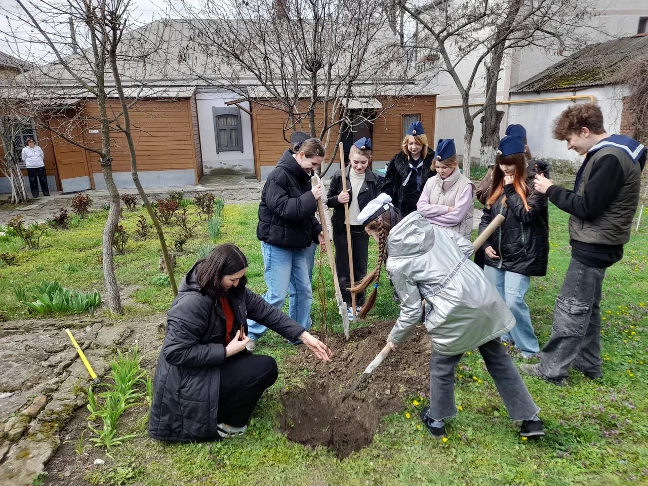 Новороссийские литераторы и юные активисты «Шхуны ровесников» высадили абрикосовые деревца во дворе дома-музея Николая Островского